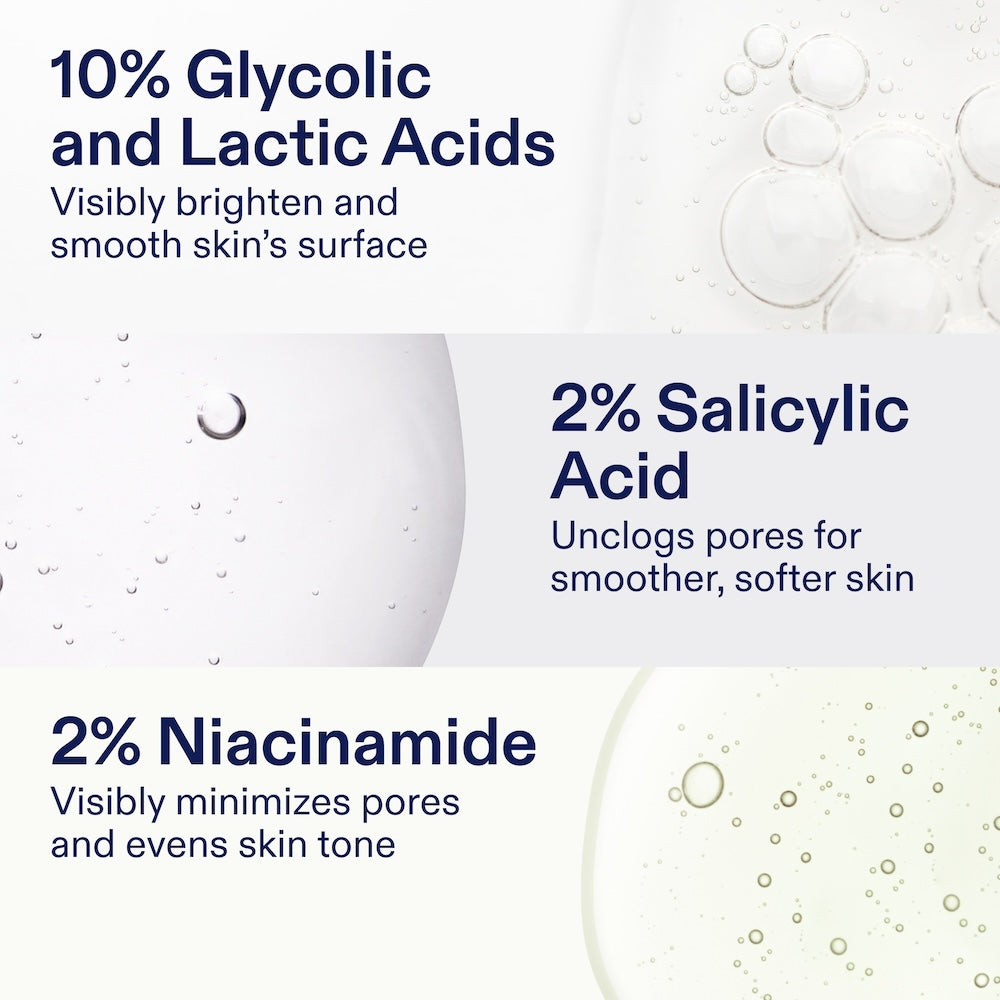 - 2% Salicylic Acid: An oil-soluble BHA exfoliant that unclogs pores for smoother, softer skin