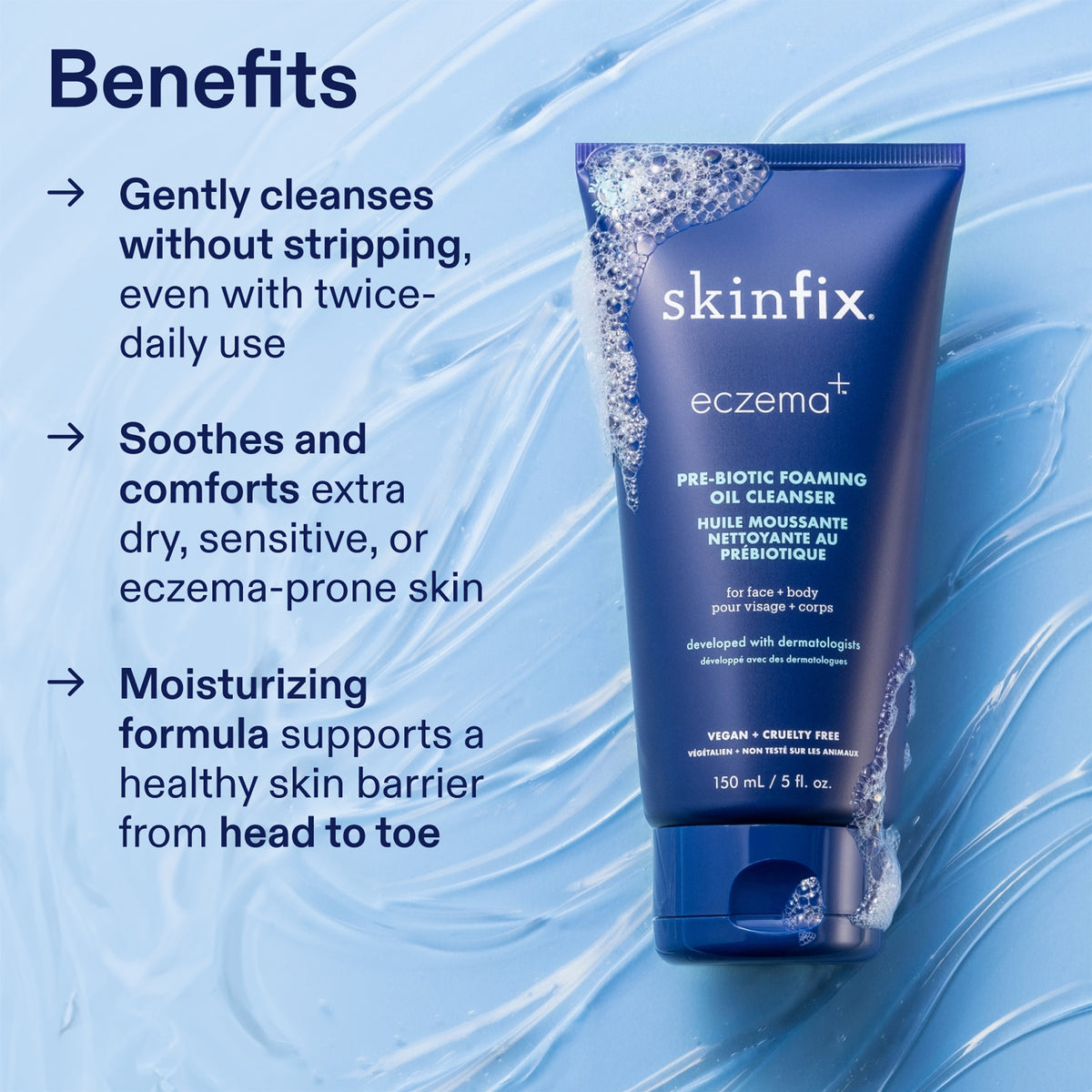 - This gentle face and body cleanser was developed with a leading derm for irritated skin conditions, and made with extra dry, eczema-prone skin in mind. Its creamy formula is loaded with barrier-restoring moisturizers, so you can wash twice a day and still feel comfortably hydrated.